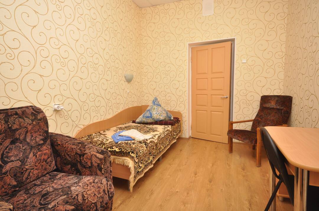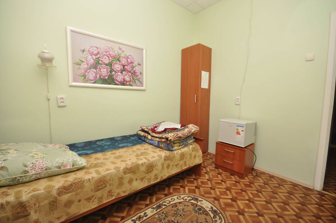Санаторно-курортное лечение. Номер на одного человека. В номере: прикроватные тумбочки, телевизор, душевая кабина, необходимые средства гигиены. Вид из окна на озеро или на парковую зону. Балконы во всех номерах.